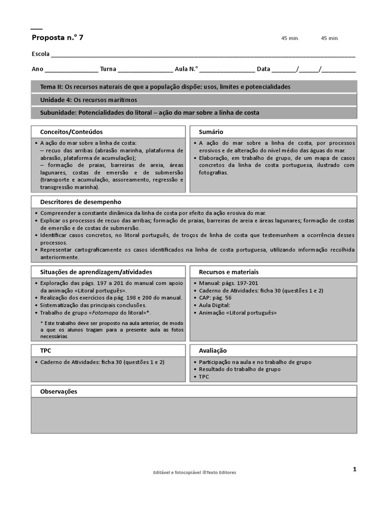 Caderno de Atividades: ficha 30 (questes 1 e 2) Participao na aula e no trabalho de grupo