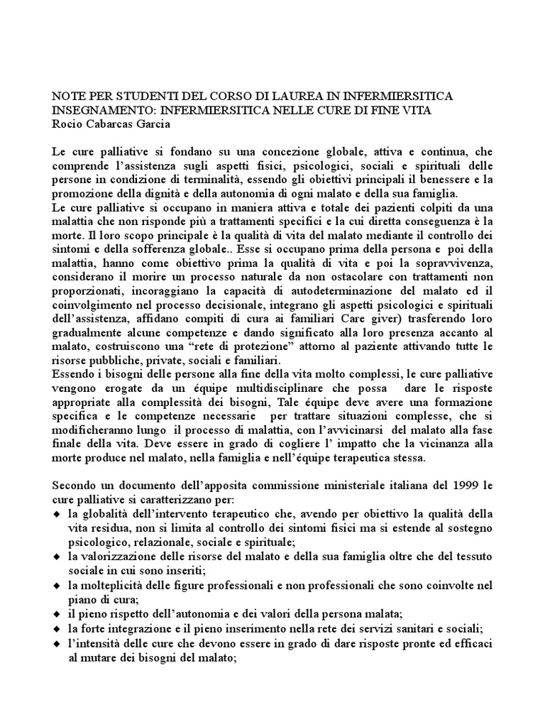 principi fondamentali nelle cure palliative. Afferma inoltre il ruolo dellinfermiere nei