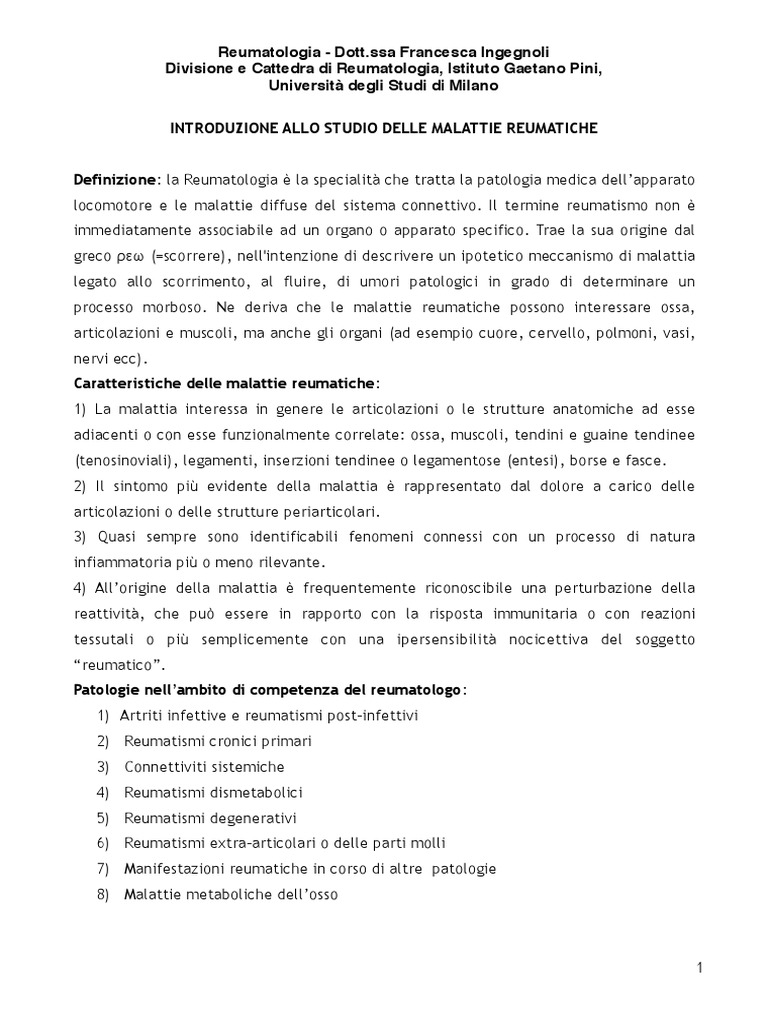 Reumatologia - [Link] Francesca Ingegnoli