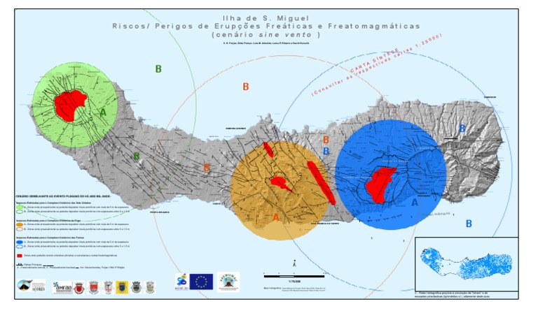 Zonas onde poderão ocorrer emissões plinianas a vulcanianas e outras freatomagmáticas