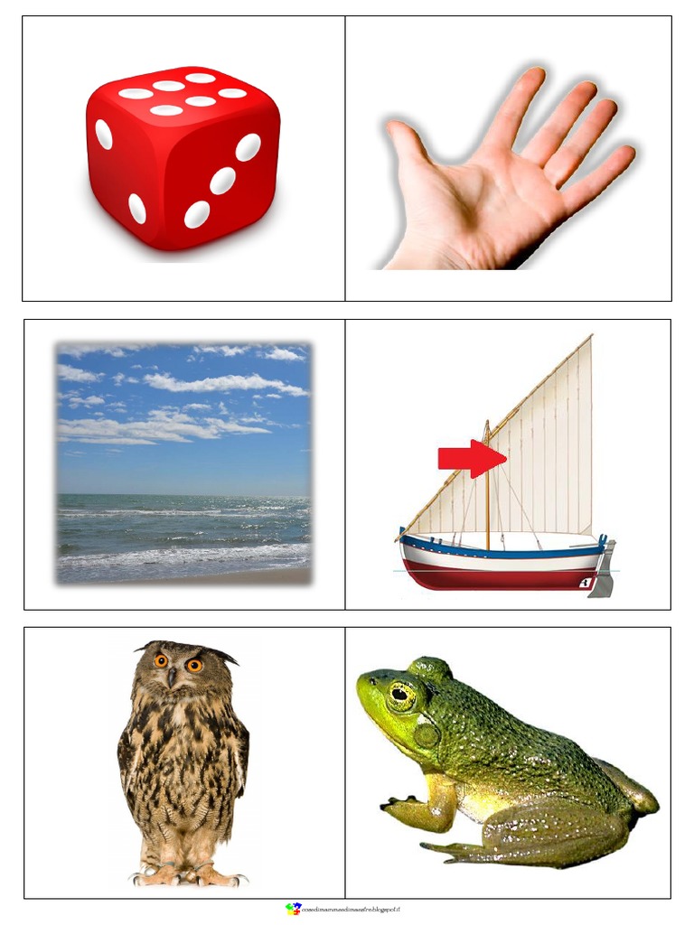 Carte contenenti parole bisillabe piane. Stampare i fogli in modo che da un lato siano visibili le immagini, sul retro le parole; plastificare e ritagliare.