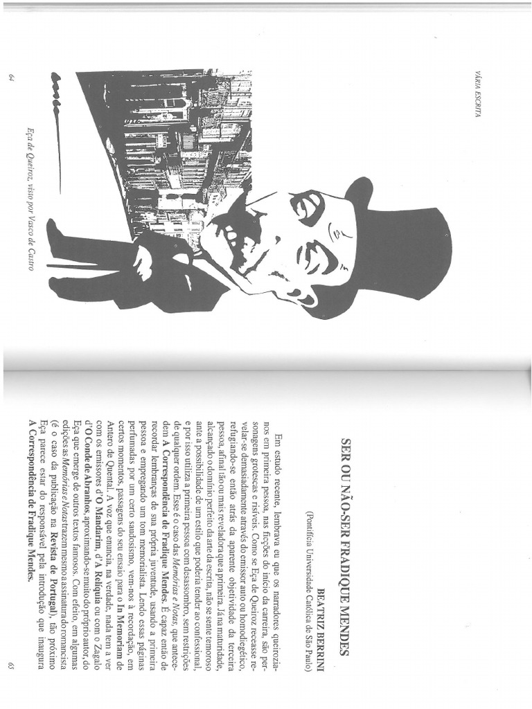 A estudiosa analisa a personagem Fradique Mendes, criada por Eça de Queirós, averiguando, entre outras questões, se ela é uma projeção do seu criador.
