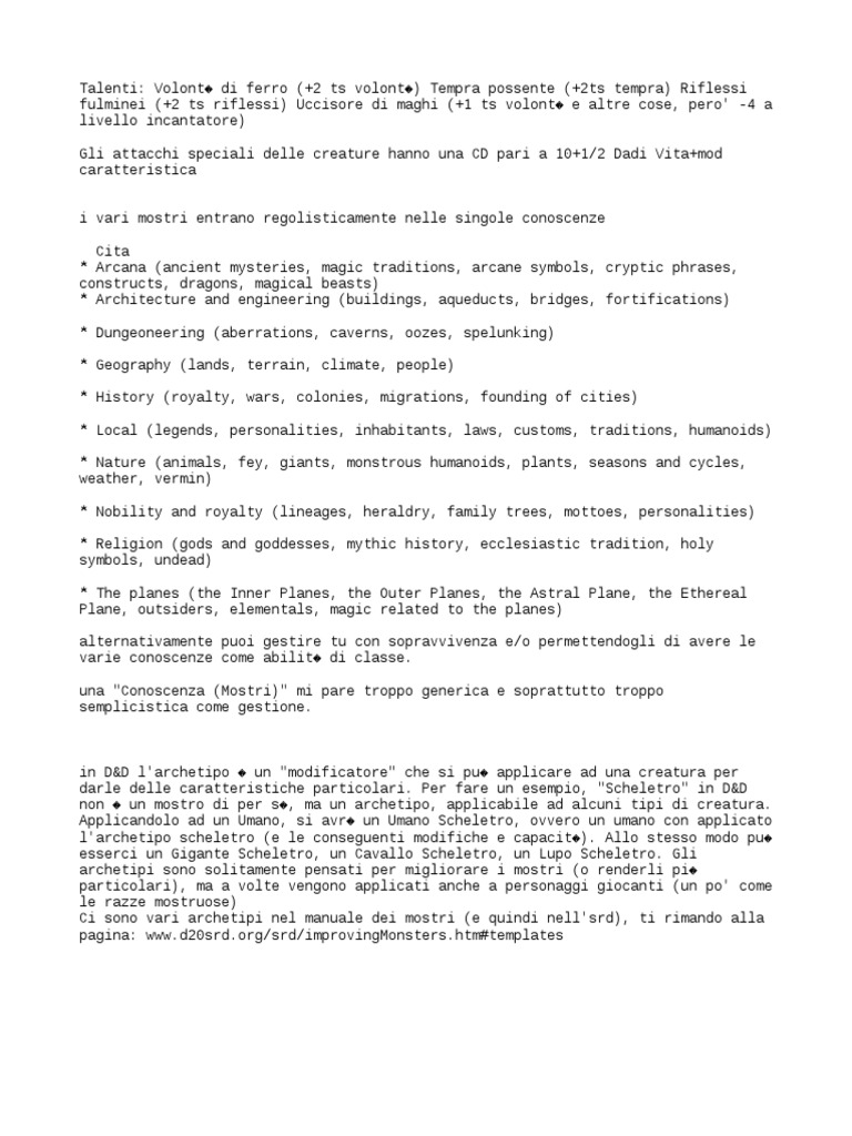 darle delle caratteristiche particolari. Per fare un esempio, "Scheletro" in D&D