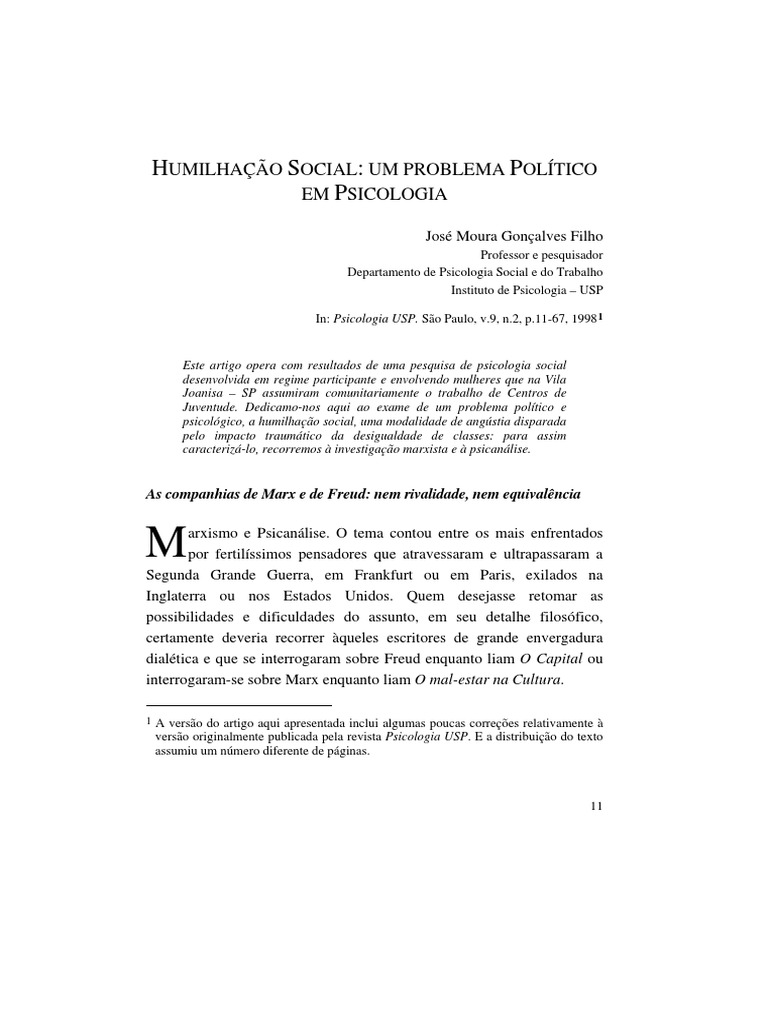 GONALVES FILHO, J.M., Social Humiliation a political problem