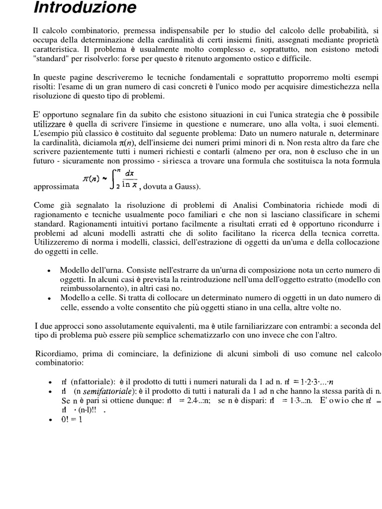 I1 calcolo combinatorio, premessa indispensabile per lo studio del calcolo delle probabilit, si