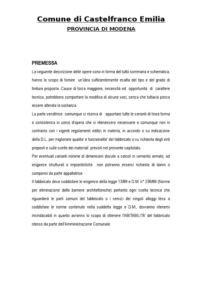 Il fabbricato deve soddisfare le esigenze della legge 13/89 e D.M. n 236/89 (Norme
