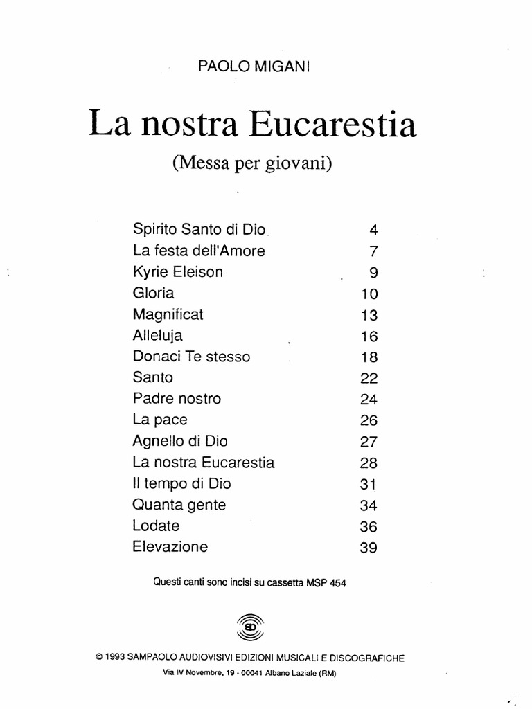 40 © & SAMPAOLO AUDIOVISIVI EDIZIONI MUSICAL! E DISCOGRAFICHELa nostra Eucarestia
