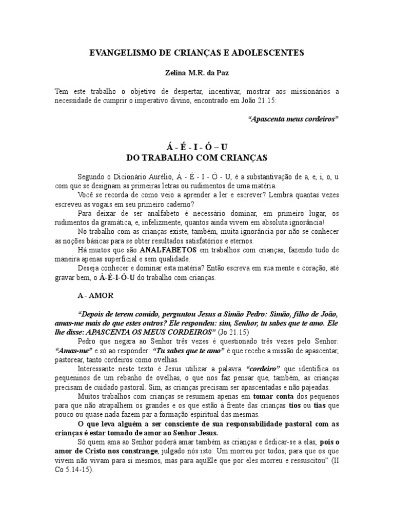 EVANGELISMO DE CRIANAS E ADOLESCENTES