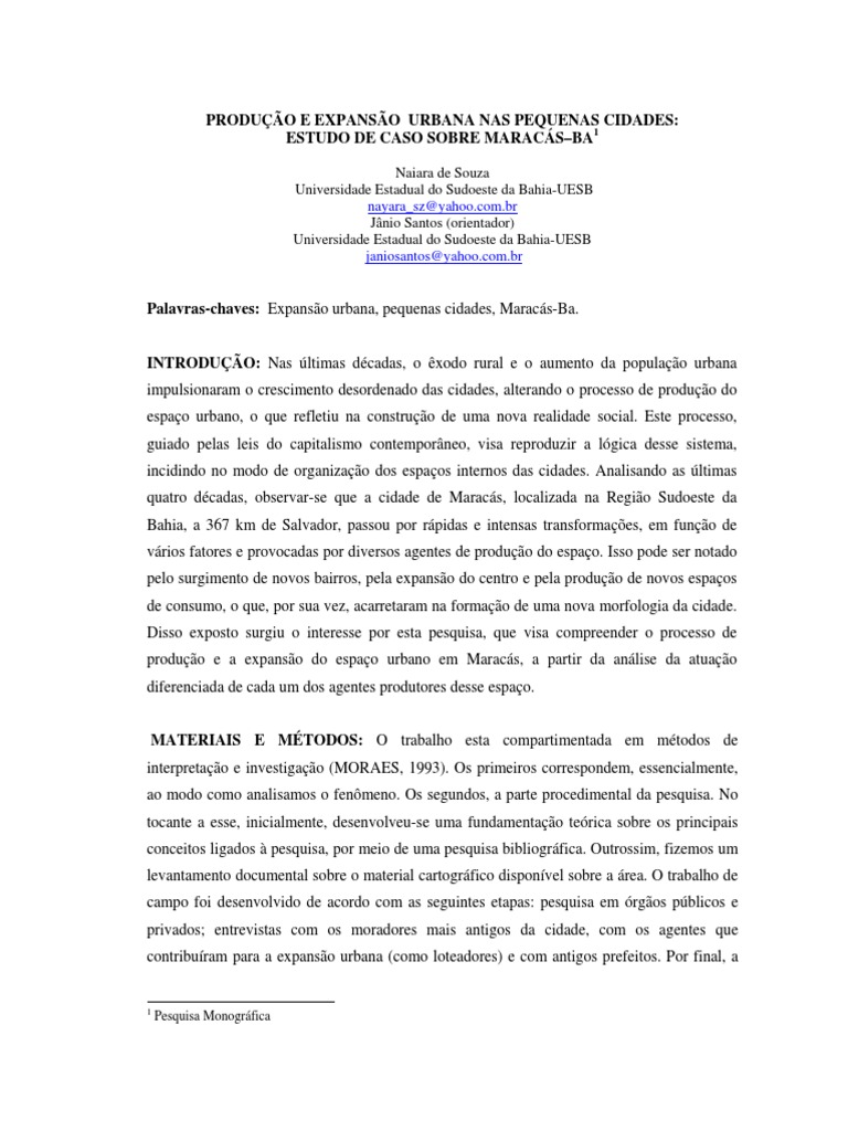 distribuição dos equipamentos urbanos e comerciais de Maracás é primordial se almejarmos