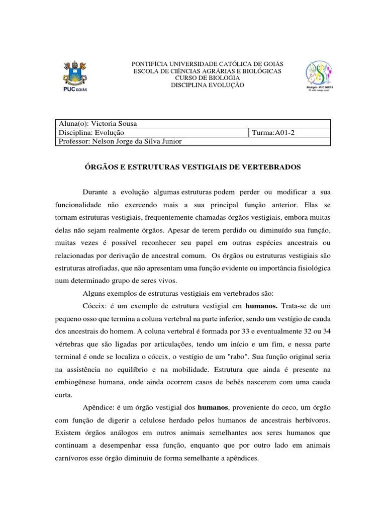 RGOS E ESTRUTURAS VESTIGIAIS DE VERTEBRADOS