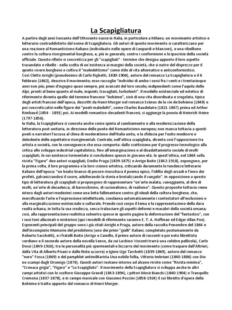 letterario contraddistinto dal nome di Scapigliatura. Gli autori di questo movimento si caratterizzano per