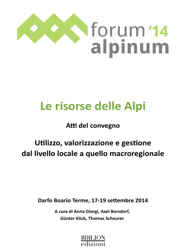 Il ForumAlpinum un convegno internazionale dal ed interpretate come risorsa, una ricchezza che pu