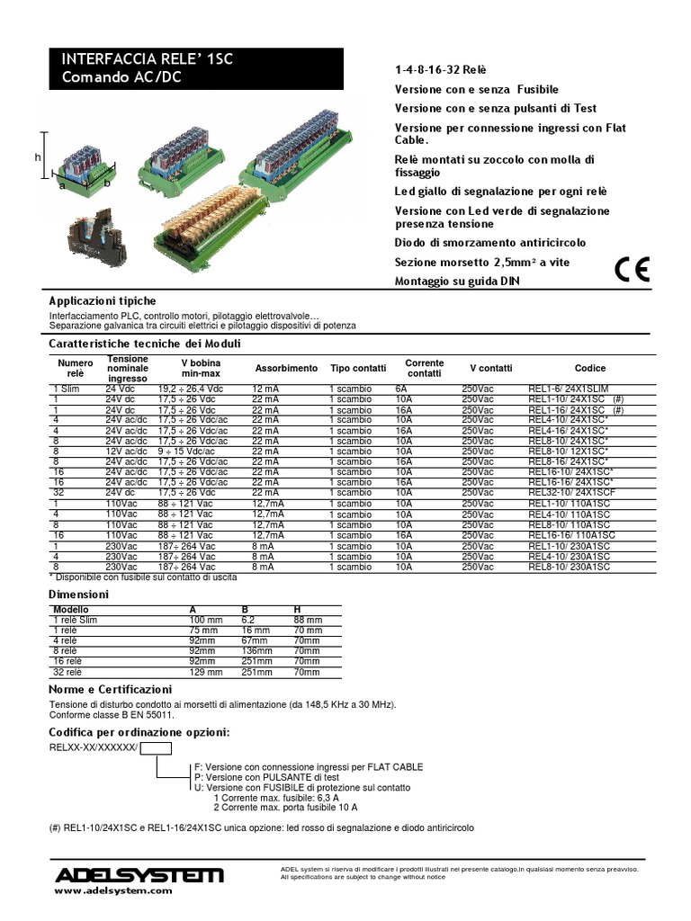 1 Slim 24 Vdc 19,2 26,4 Vdc 12 mA 1 scambio 6A 250Vac REL1-6/ 24X1SLIM