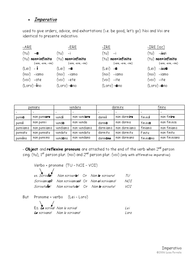 sing. (tu), 1st person plur. (noi) and 2nd person plur. (voi) (only with affirmative imperative)