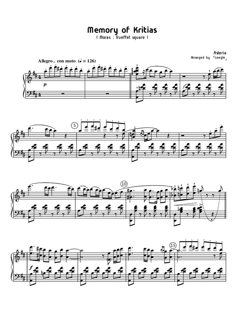 Questo documento musicale contiene una composizione per pianoforte intitolata 'Memory of Kritias'. La composizione include diverse sezioni musicali e variazioni di tempo e tono.