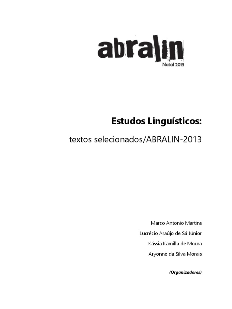E82 Estudos linguísticos: textos selecionados / Abralin-2013. Marco Antonio Martins, Lucrécio Araújo de Sá Júnior, Kássia Kamilla de Moura, Aryonne da Silva Morais (Orgs.). – João Pessoa: Ideia, 2016.