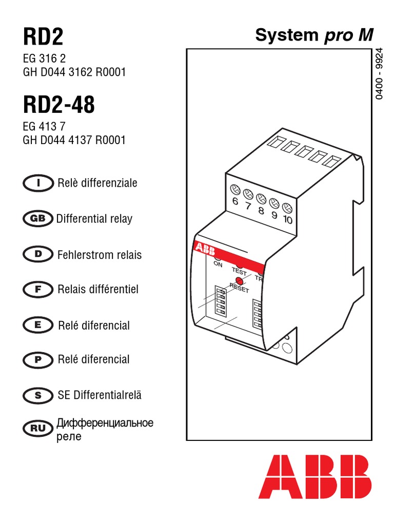 The RD2 differential relay, combined with an external toroidal