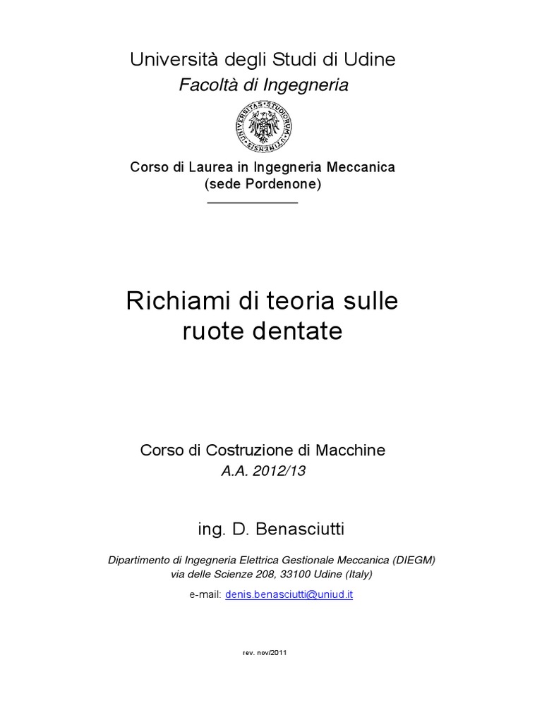 Universit degli Studi di Udine, Facolt di Ingegneria, Corso di Laurea in Ingegneria Meccanica (sede PN)