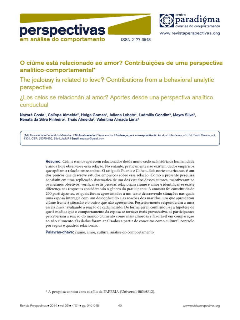[1-9] Universidade Federal do Maranho | Ttulo abreviado: Cime e amor | Endereo para correspondncia: Av. dos Holandeses, s/n. Ed. Porto Ravena, apt.