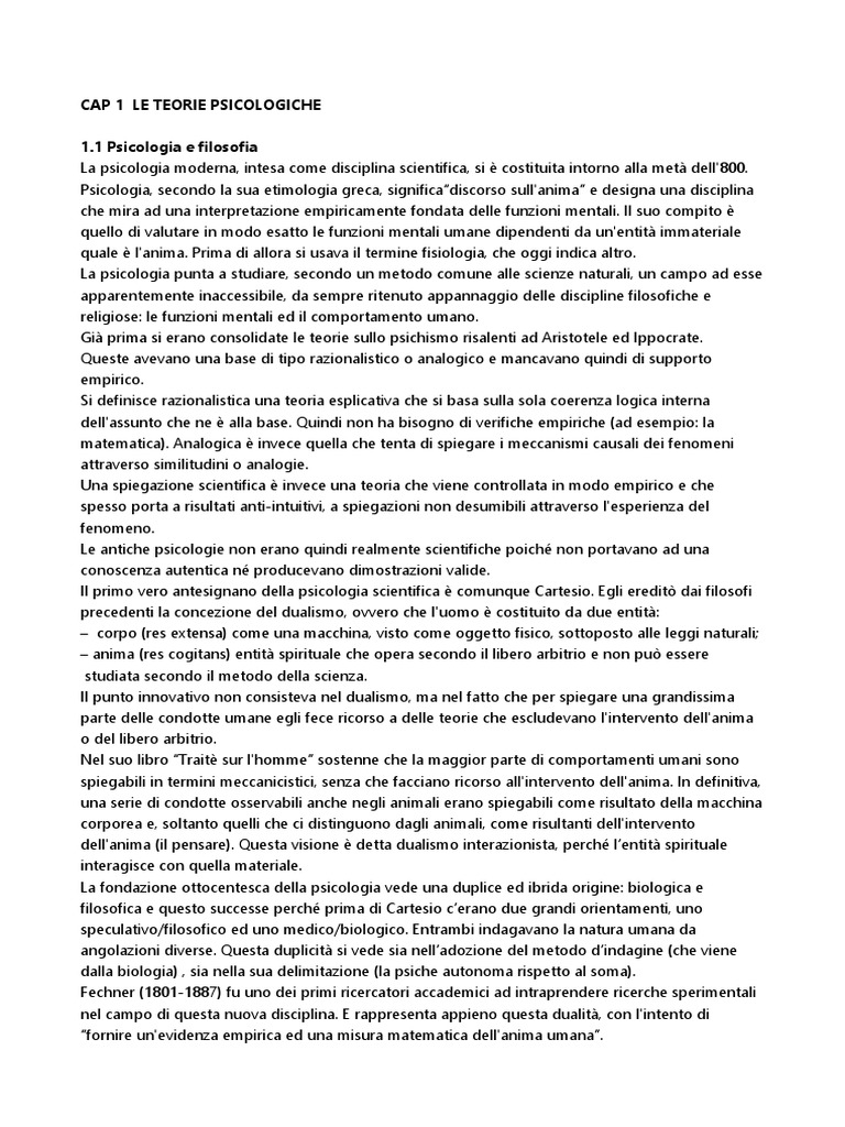 Il primo vero antesignano della psicologia scientifica comunque Cartesio. Egli eredit dai filosofi