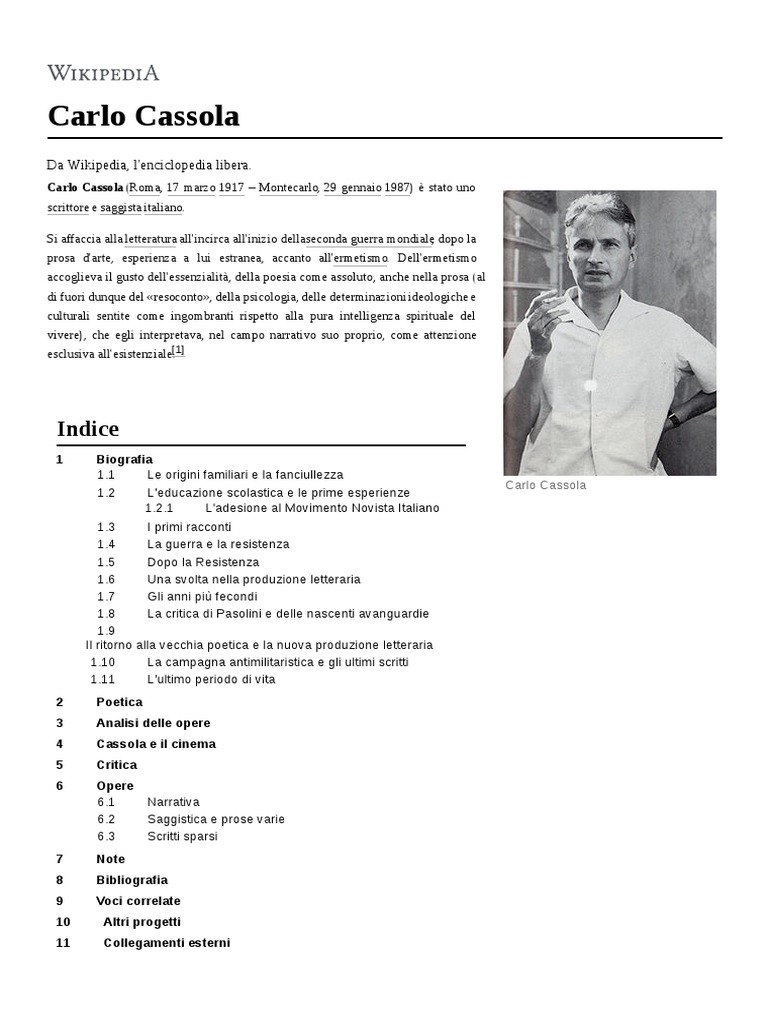 Bibliografia di Carlo Cassola, [Link].