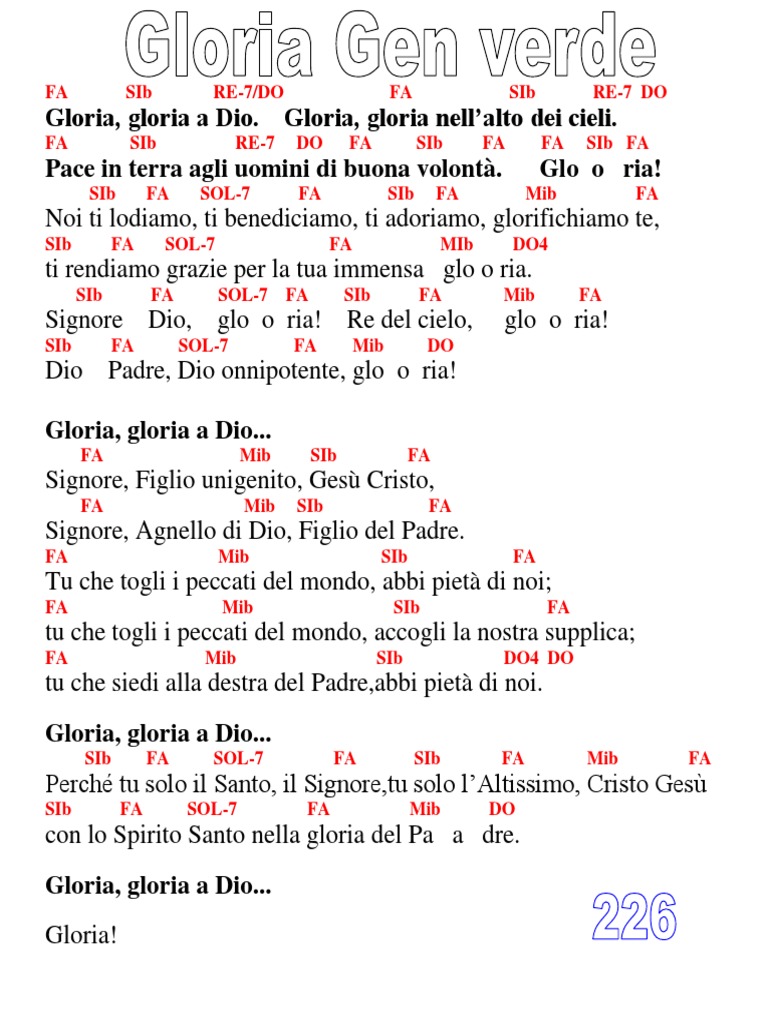 Gloria, gloria a Dio. Gloria, gloria nellalto dei cieli.