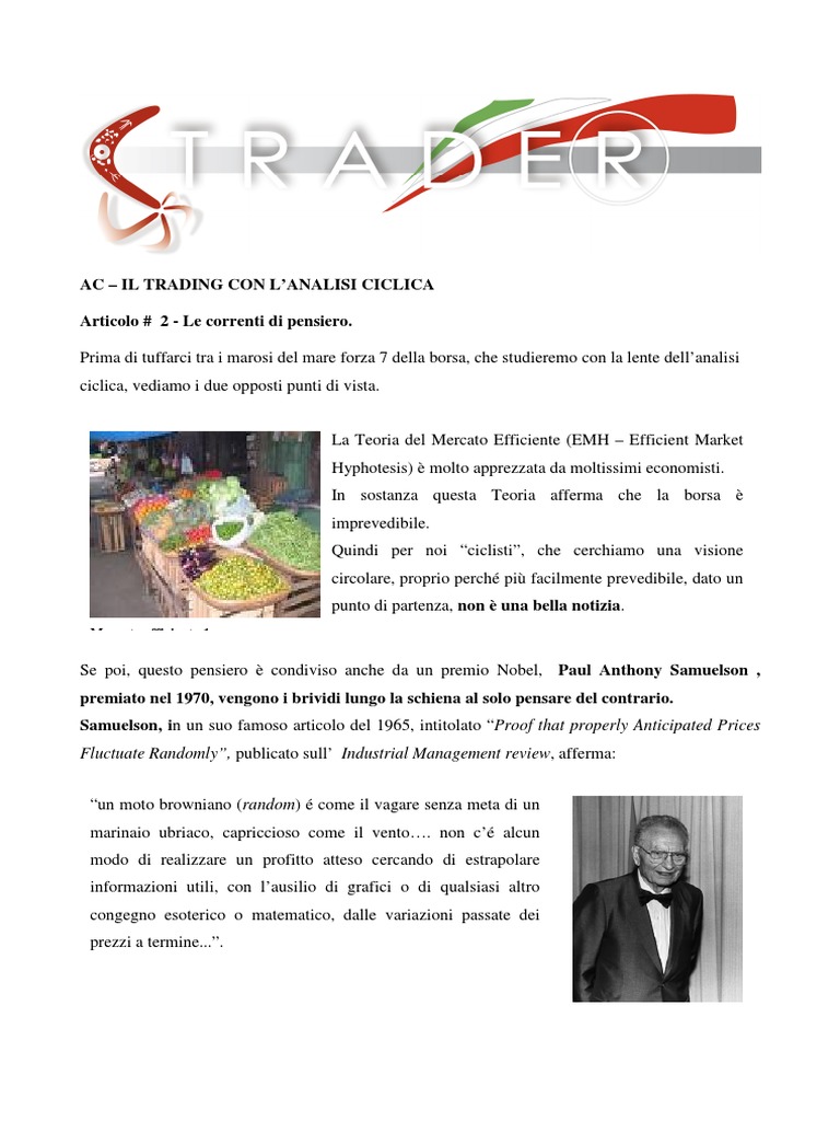 Samuelson, in un suo famoso articolo del 1965, intitolato Proof that properly Anticipated Prices