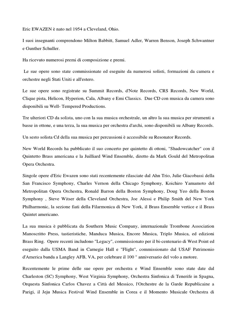 Dottorato gradi dalla Juilliard School, Eric Ewazen ha scritto molte opere da camera per ottoni,