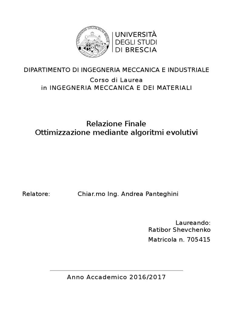 Ottimizzazione mediante algoritmi evolutivi