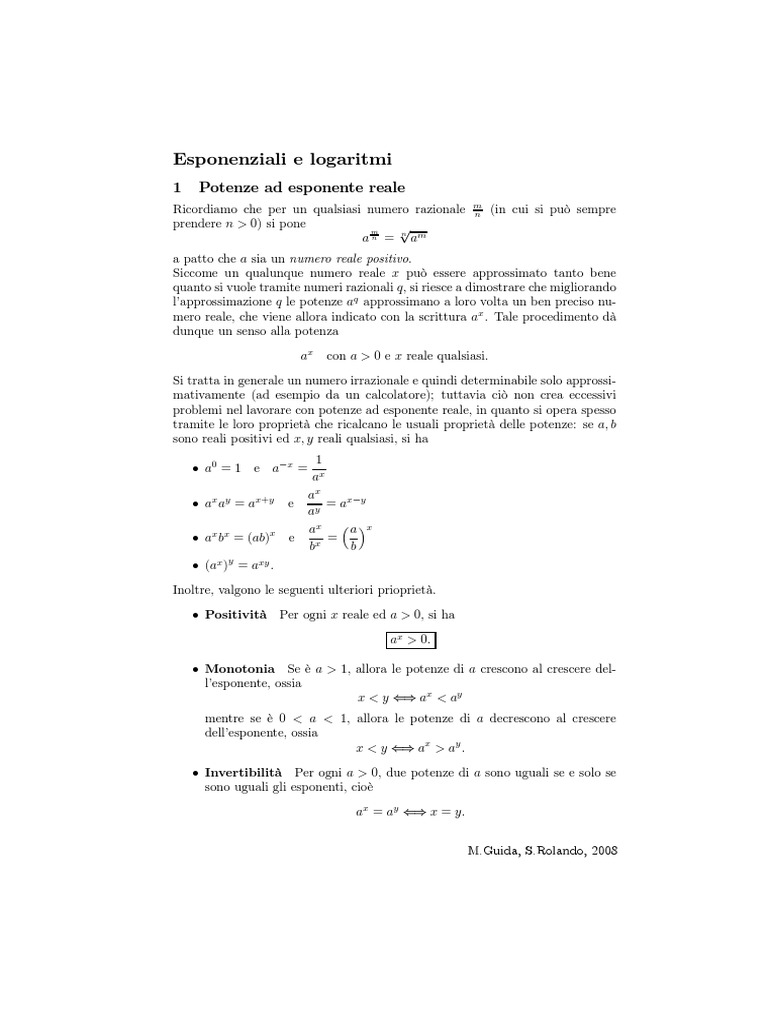 Dati due numeri reali b > 0 e a > 0 con a 6= 1, si pu dimostrare che lequazione