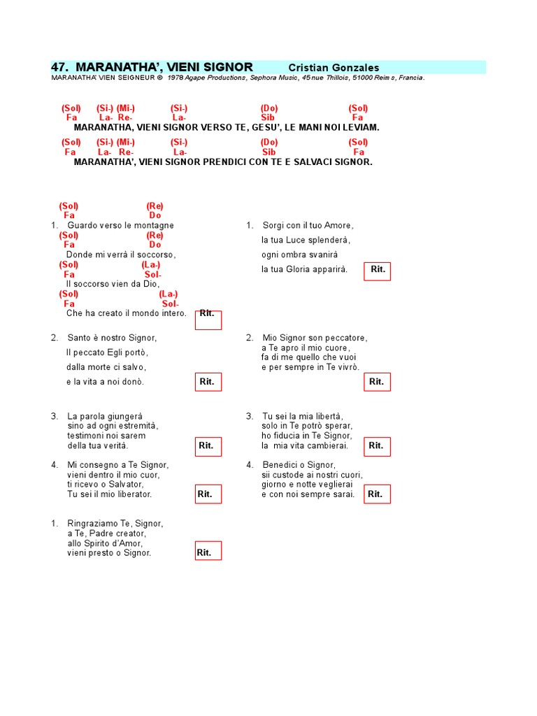 MARANATHA, VIENI SIGNOR VERSO TE, GESU, LE MANI NOI LEVIAM.