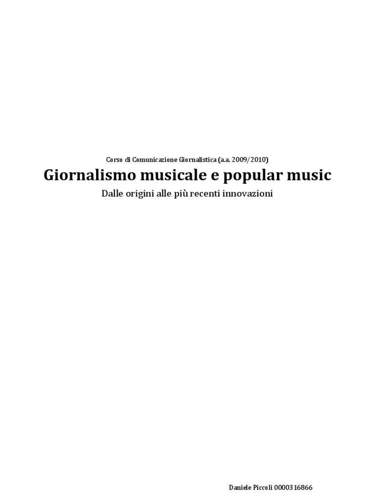 storica esaustiva del giornalismo musicale, né una completa analisi semiotica delle sue modalità