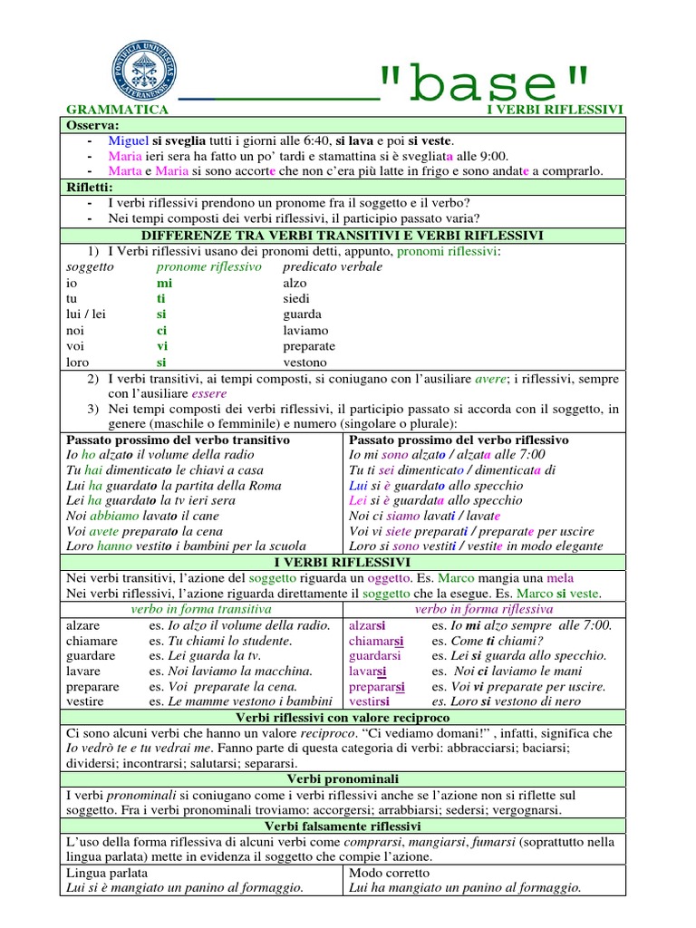 1) I Verbi riflessivi usano dei pronomi detti, appunto, pronomi riflessivi: