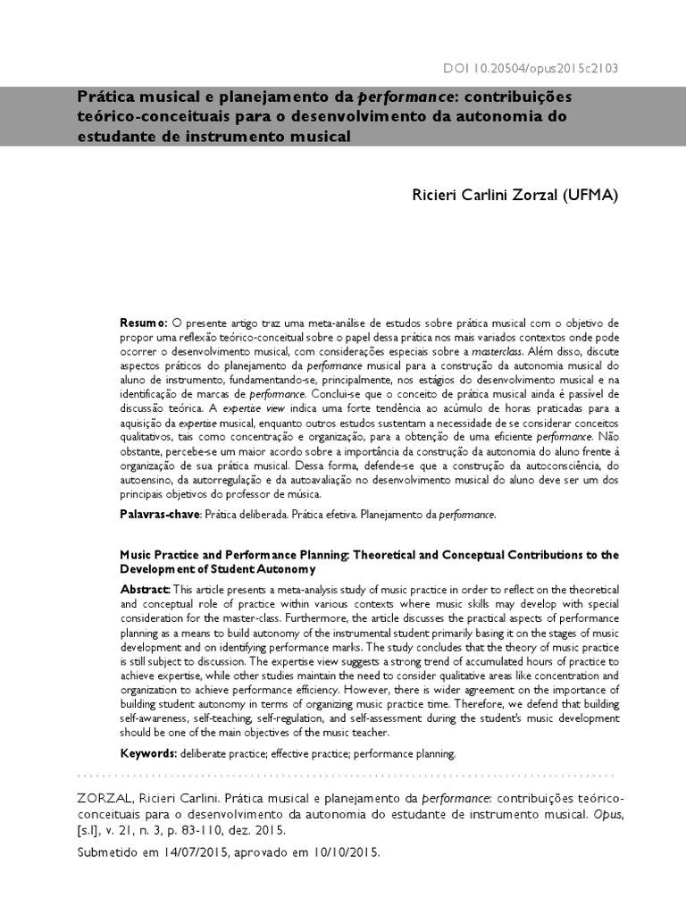 ZORZAL, Ricieri Carlini. Prtica musical e planejamento da performance: contribuies terico-