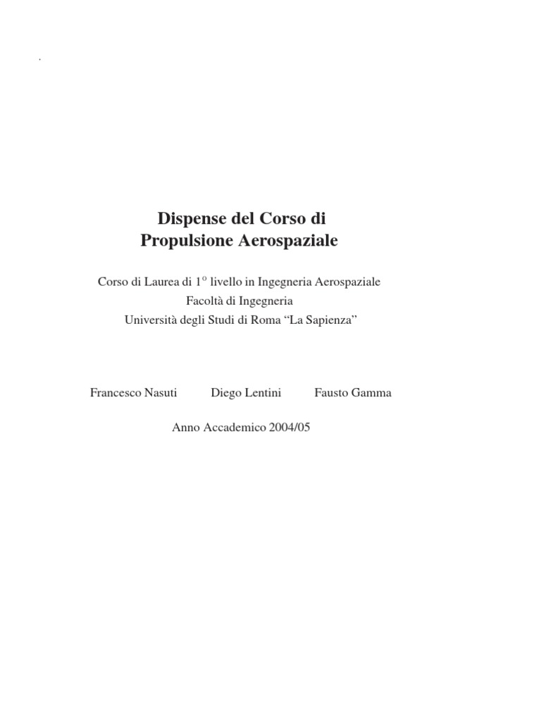 La classificazione dei sistemi di propulsione aerospaziale vista in Fig. 1.2 riguarda soltanto i prin-