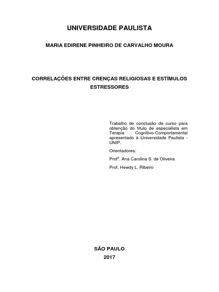 Palavras-chave: Crenças, Religião, Estresse, Cognição, Emoção