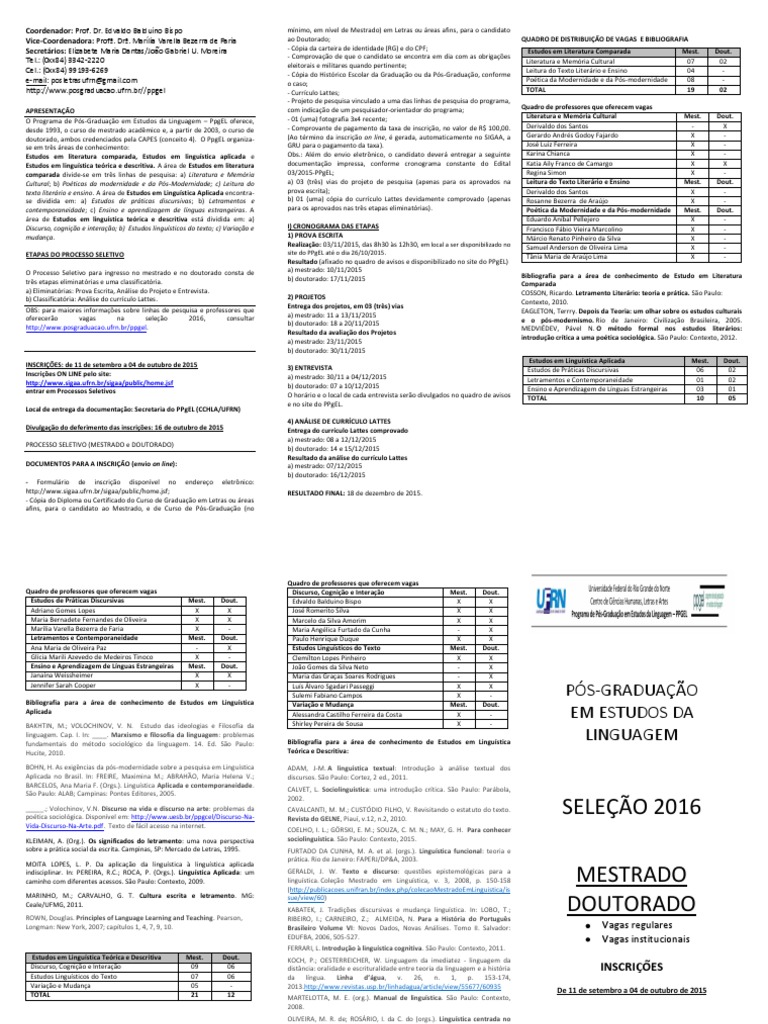 oferecerão vagas na seleção 2016, consultar e o pós-modernismo. Rio de Janeiro: Civilização Brasileira, 2005.
