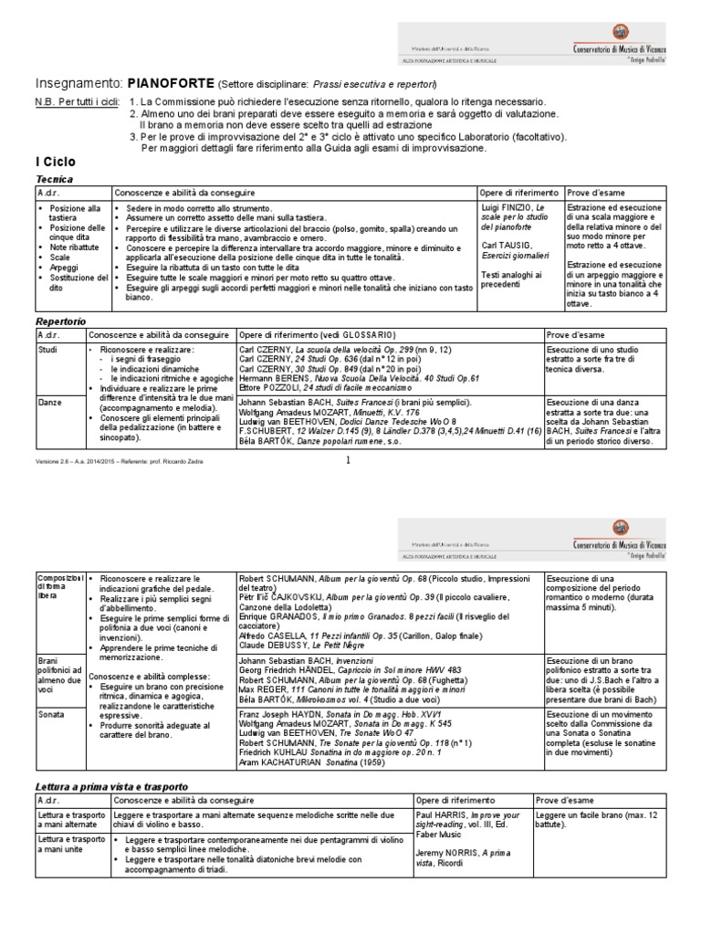 Insegnamento: PIANOFORTE (Settore disciplinare: Prassi esecutiva e repertori)