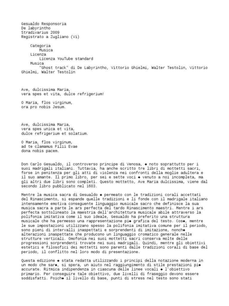 Traduzione: Salve, pi� dolce Maria, vera speranza e di luce, e la fonte fresca di
