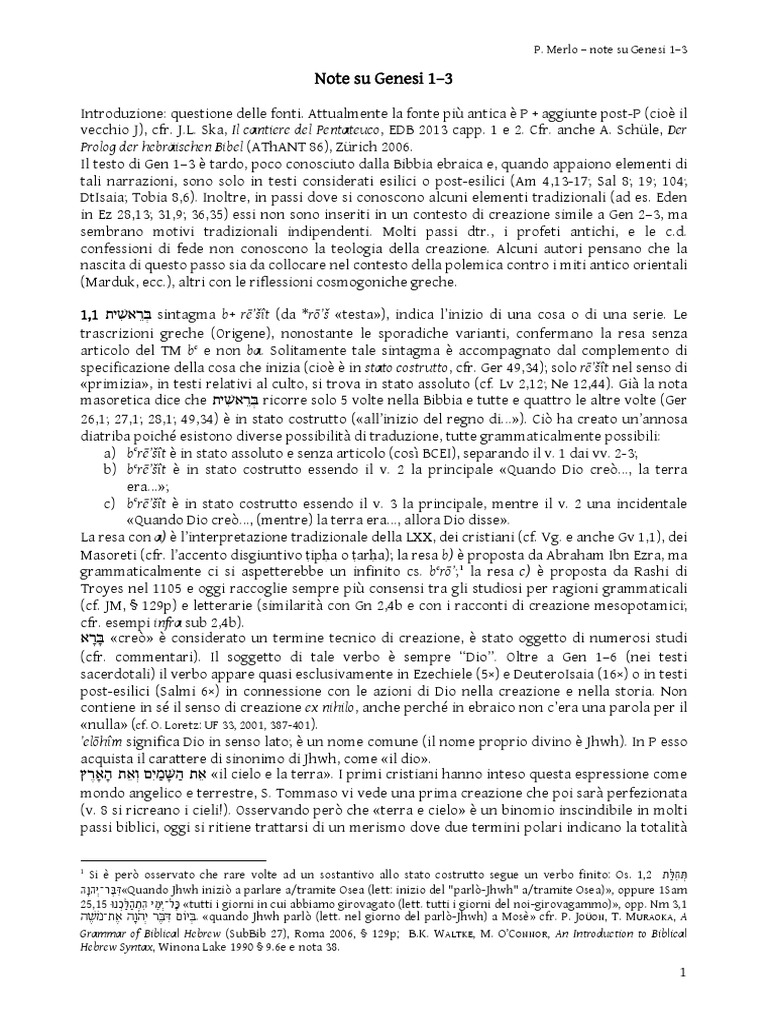 P. Merlo – note su Genesi 1–3