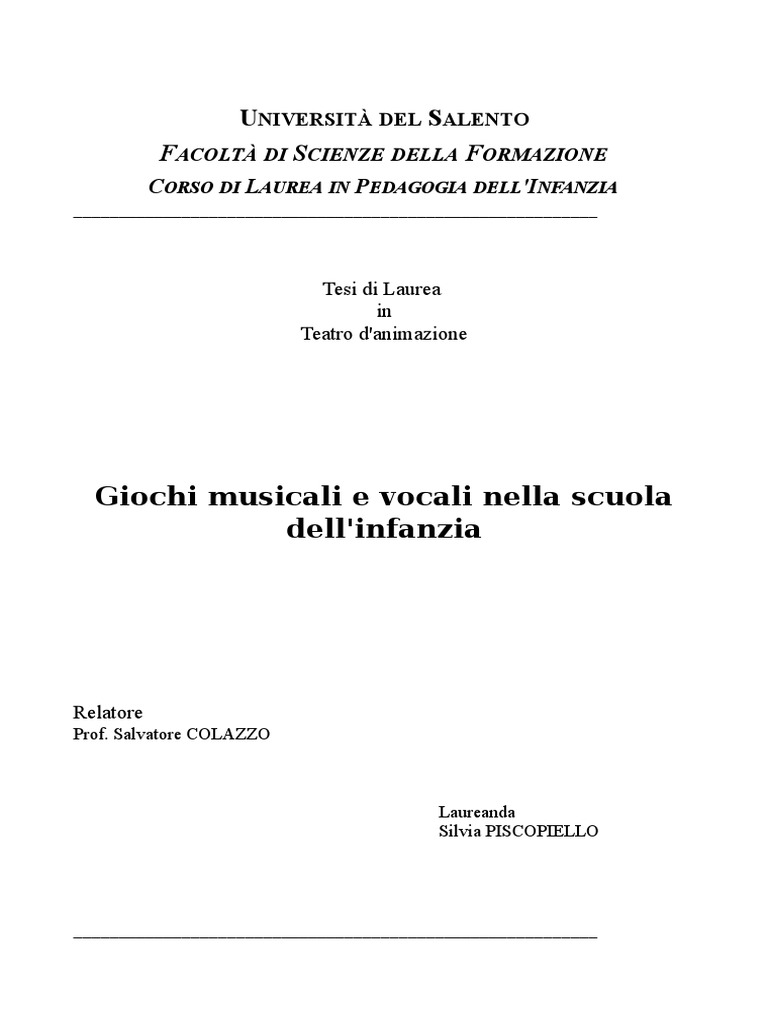 In questo mio lavoro di tesi ho proposto dei giochi musicali e vocali che si potranno