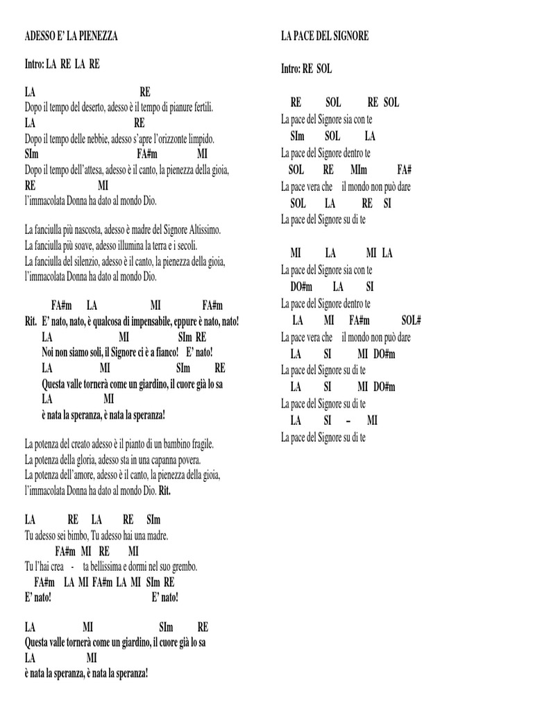 pace in terra agli uomini di buona volontà cammineremo nella Tua novità