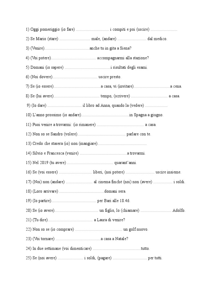 8) Se (lui avere)........................................... tempo, (scrivere) .................................. a casa.