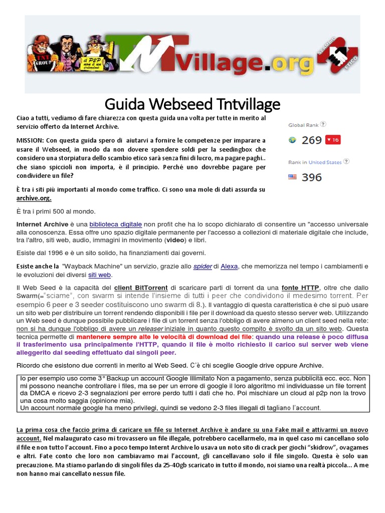 Ricordo che esistono due correnti in merito al Web Seed. C’è chi sceglie Google drive oppure Archive.