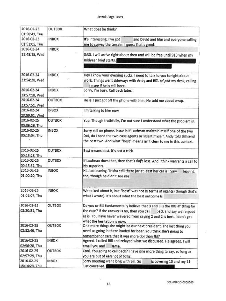 Peter Strzok is 'INBOX' and Lisa Page is 'OUTBOX