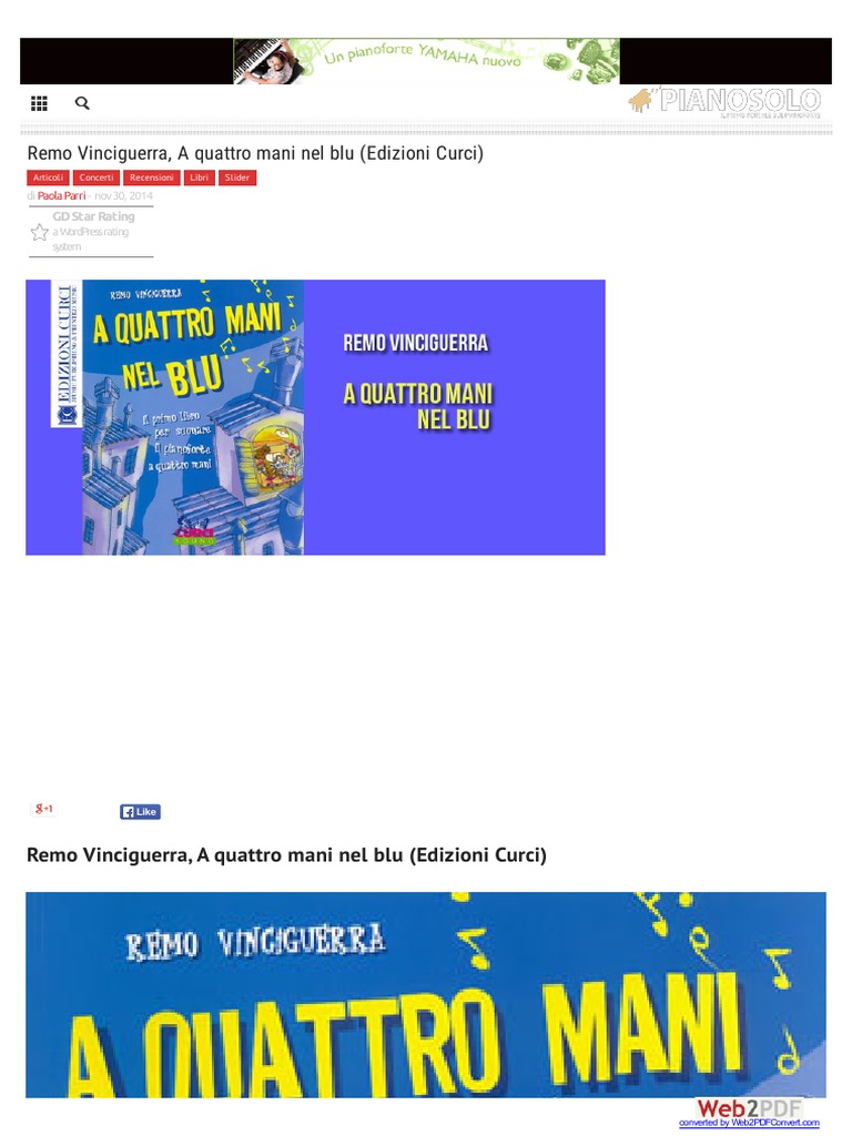 “A quattro mani nel blu” è una raccolta di brani a quattro mani edita da Curci. Il sottotitolo del volume infatti recita “Il primo libro