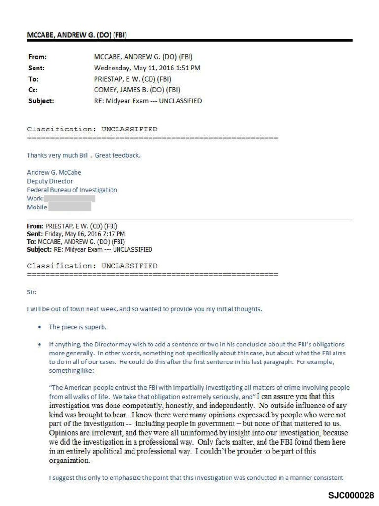 I’ve been trying to imagine what it would look like if I decided to do an FBI only press event to close out our work and hand the matter to DOJ. To help shape our discussions of whether that, or something different, makes sense, I have spent some time crafting what I would say, which follows. In my imagination, I don’t see me taking any questions. Here is what it might look like: