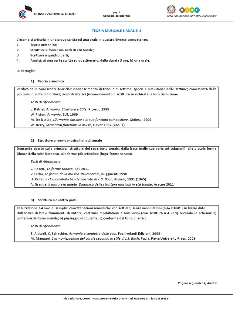 Corsi pre-accademici ALTA FORMAZIONE ARTISTICA E MUSICALE