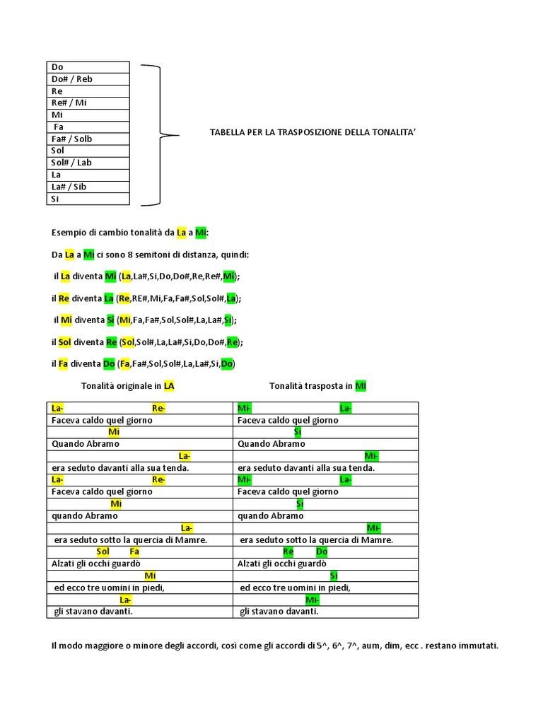 TABELLA PER LA TRASPOSIZIONE DELLA TONALITA’