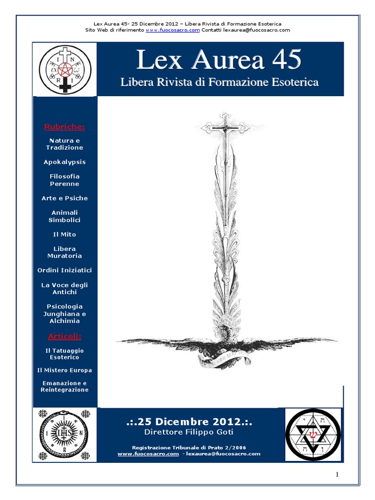 Lex Aurea 45- 25 Dicembre 2012 – Libera Rivista di Formazione Esoterica